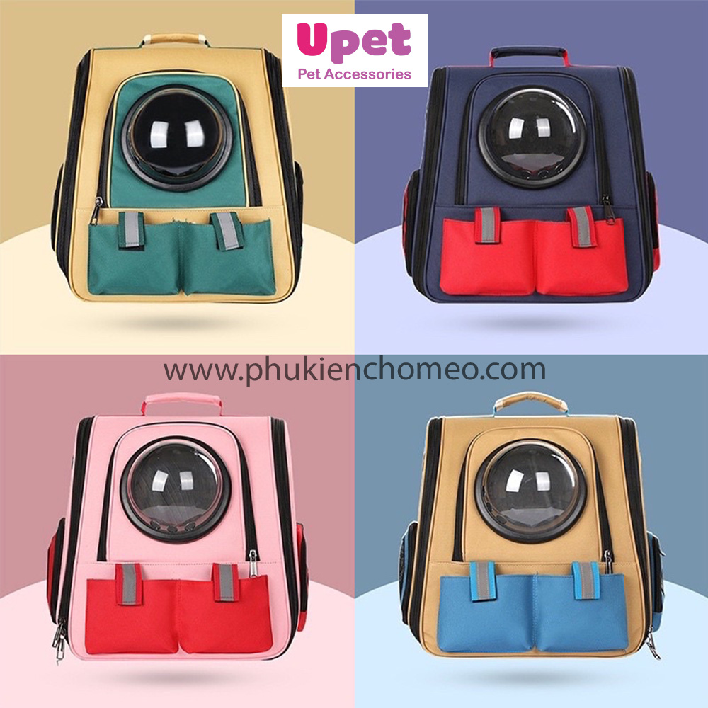 Balo phi hành kèm túi bên hông và túi trước, balo vận chuyển chó mèo thú cưng rộng rãi phù hợp đem thú cứng đi xe máy, ô tô, tàu..., thiết kế có túi đựng đồ thuận tiện
