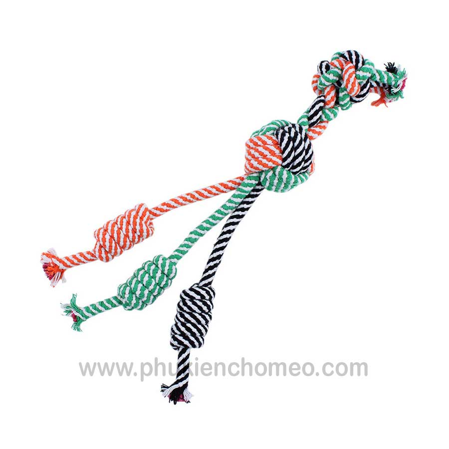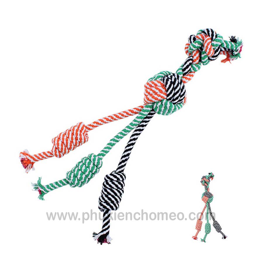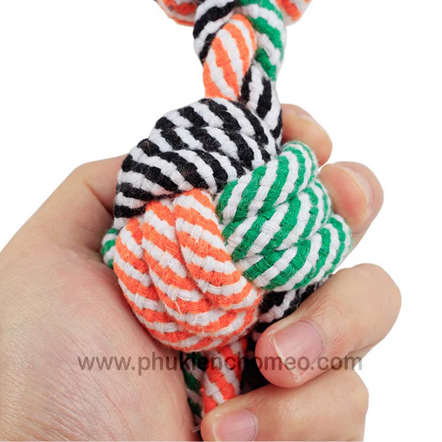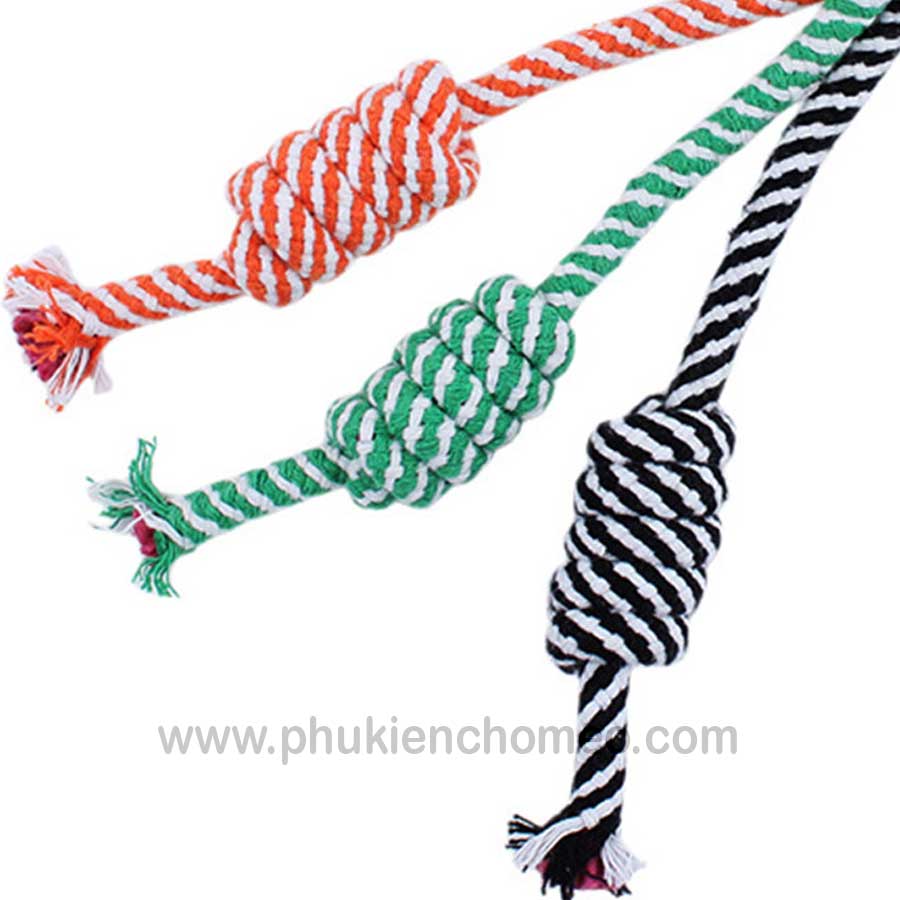 Đồ chơi bóng thừng cho chó mèo, bóng được tết bằng sợi thừng chắc chắn, có thêm phần tay cầm, thích hợp cho chó mèo chơi kéo co, hoặc mèo chơi đấm bốc.