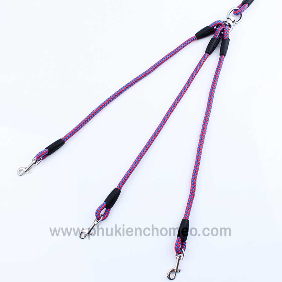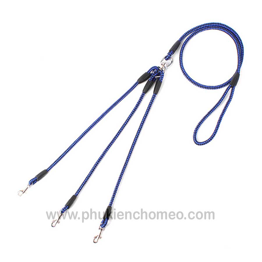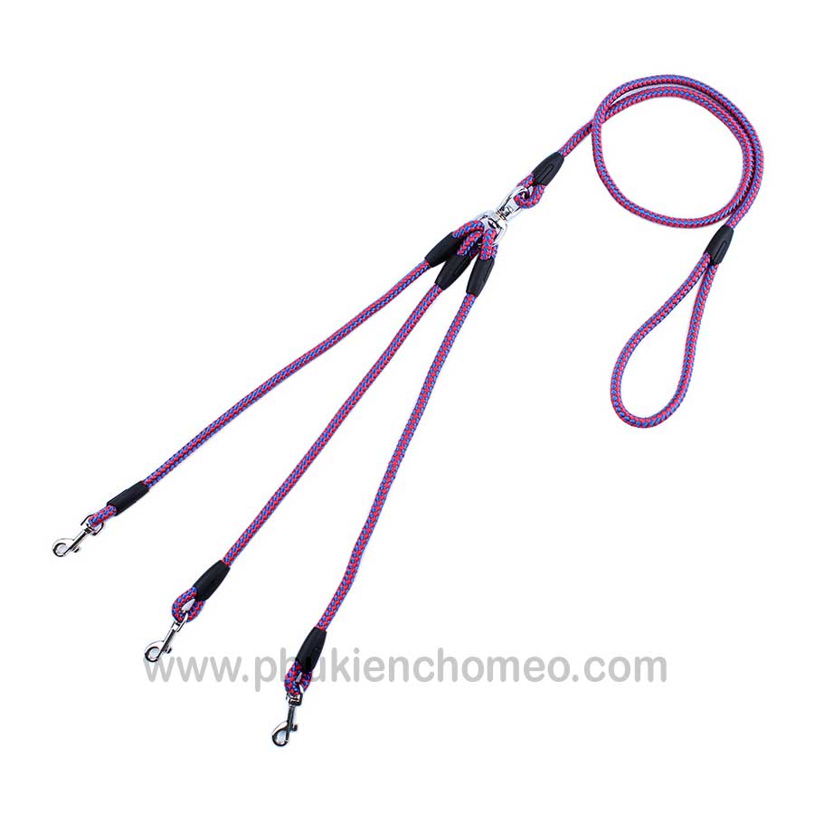 Dây được thiết kế với 3 đầu dây dắt có thể giúp cho chúng ta dắt cùng lúc dắt 3 bé cún đi chơi mà chỉ cần 1 sợi dây duy nhất Thích hợp cho các bé <8kg