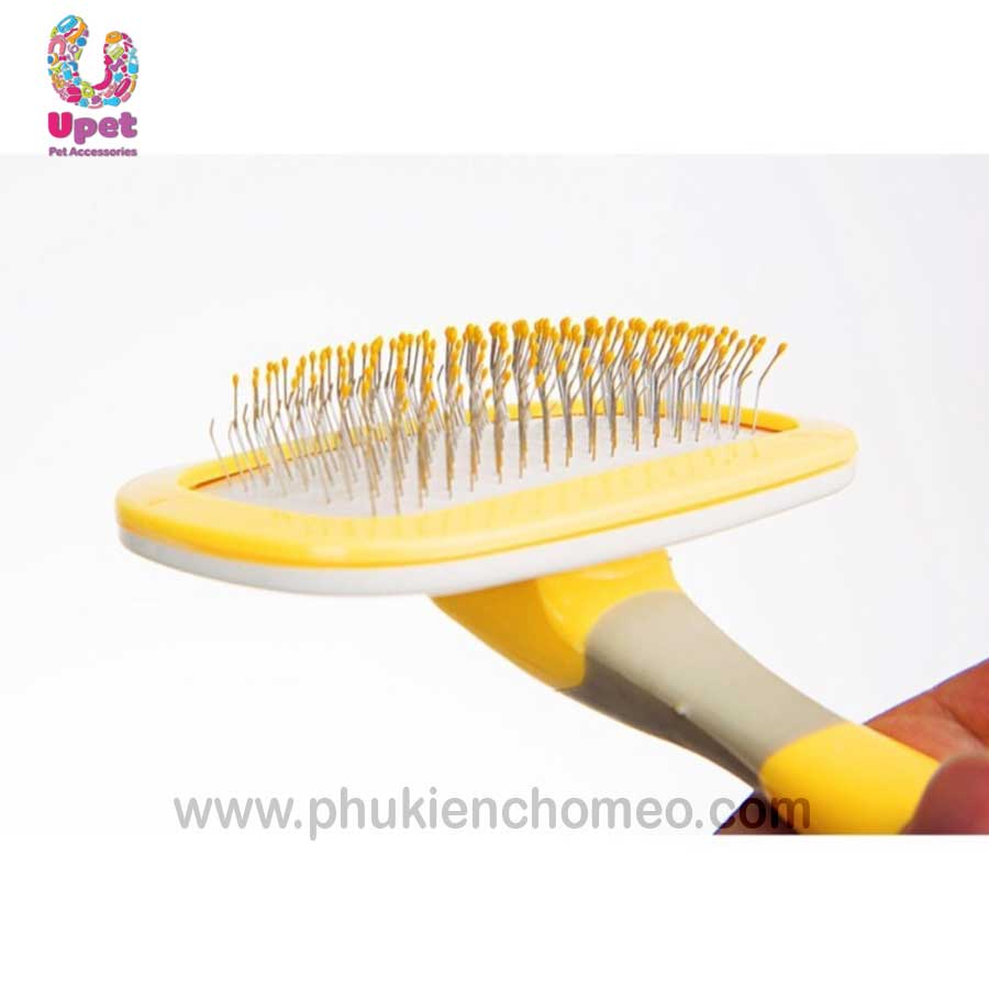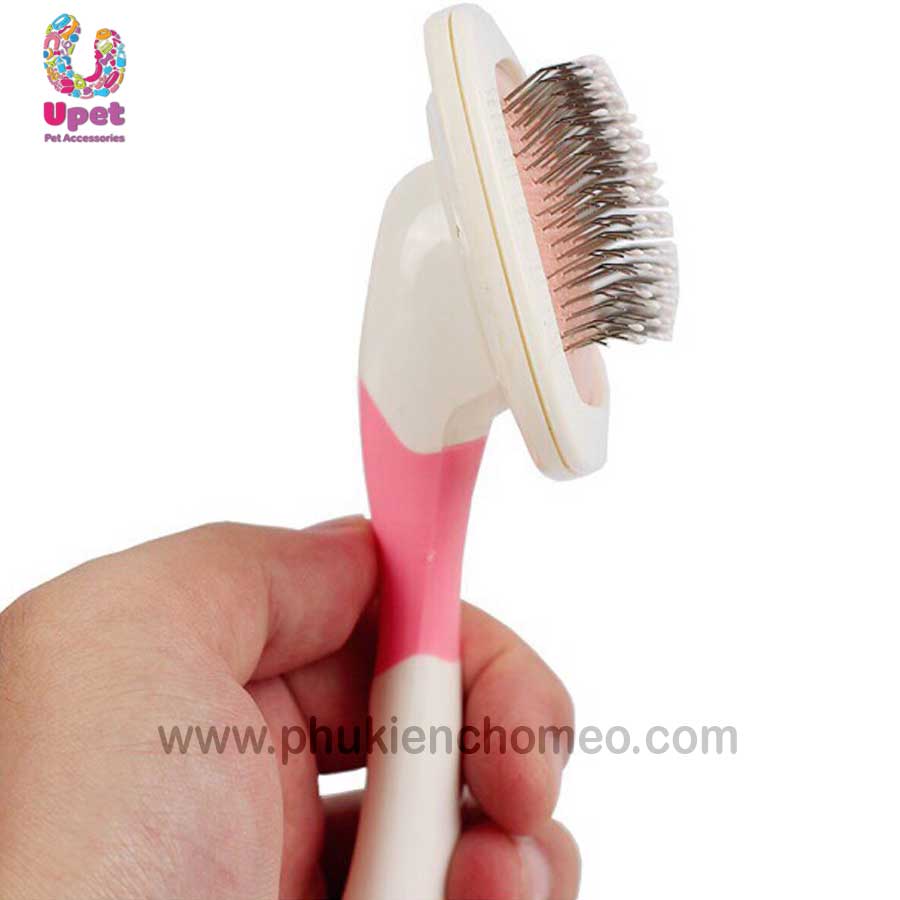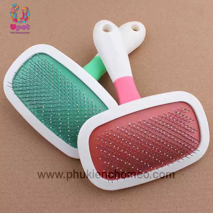 - Phần quan trọng nhất đó là đầu lược. Đầu lược được gắn những sợi kẽm nhỏ nhưng vô cùng chắc chắn, có độ cong vừa phải đổ về 1 hướng, giúp sự ma sát của lược lên bộ lông thú cưng đạt đến một lực nhất định. Phía đầu sợi kẽm được bọc lớp nhựa dẻo li ti để tránh sự trầy xước lên người thú cưng.