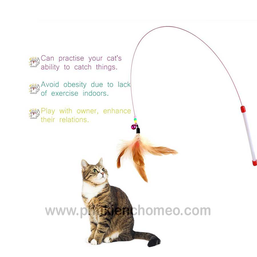 + Chi tiết: 1 cần và 1 lông vũ, kích thích thú cưng vờn bắt.