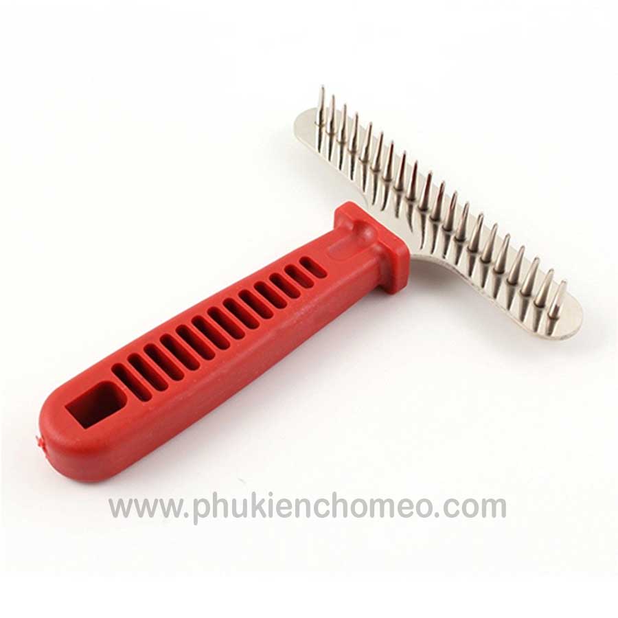 Bạn đã biết sử dụng loại lược chải nào chưa, chúng tôi sẽ cung cấp cho bạn, chiếc lược bàn cào hàng đinh được sản xuất để phục vụ nhu cầu thiết yếu này của chó mèo. Với 1 hàng đinh được làm bằng inox không gỉ đảm bảo loại sạch những đám lông rụng và bết lại trên người con vật cưng của bạn.