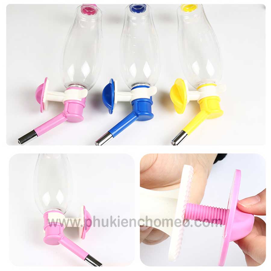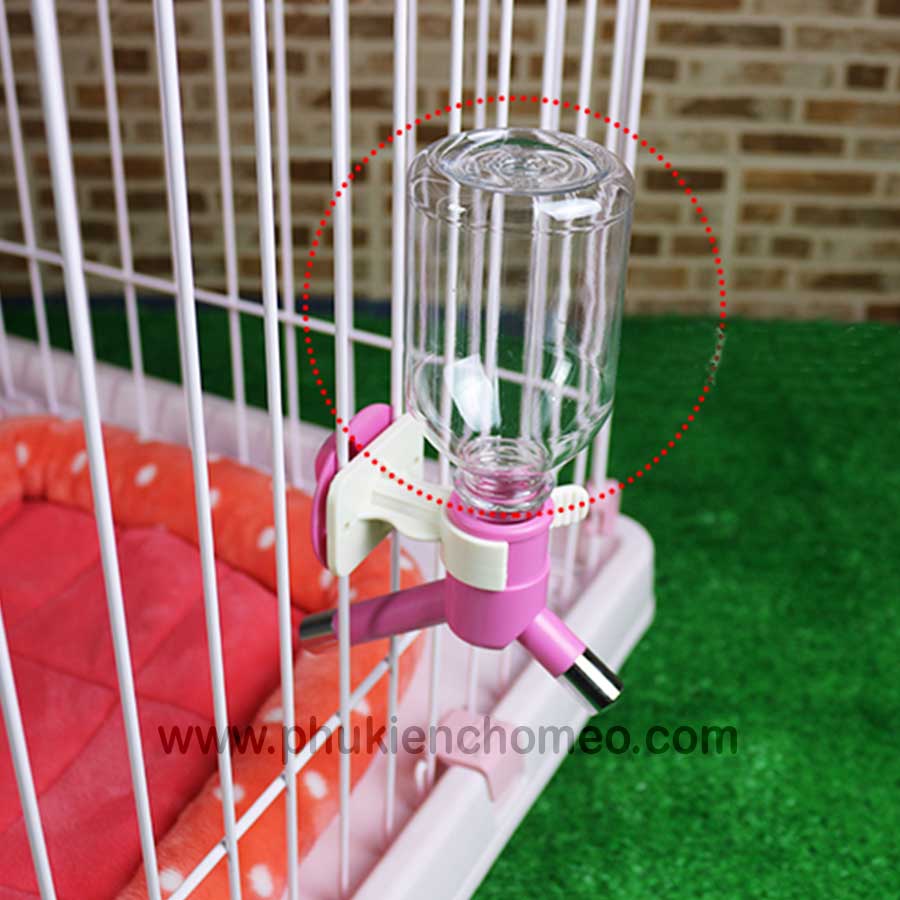 Bình nước treo chuồng có kiểu dáng hiện đại được thiết kế tinh tế, phù hợp để treo lên thành chuồng, giúp tiết kiệm diện tích, tiện lợi cho việc sinh hoạt trong ăn uống của cho mèo.