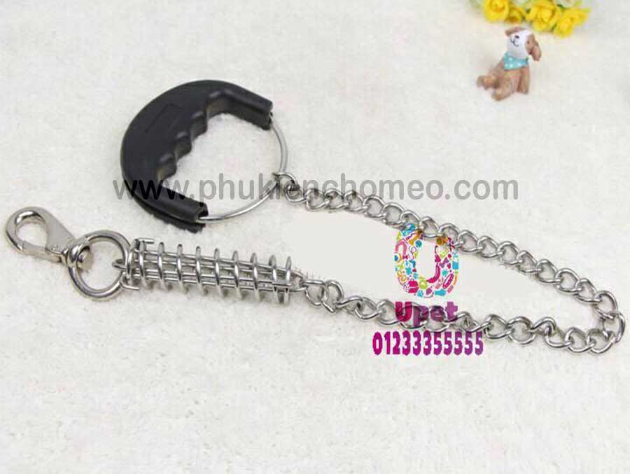 Dây dắt xích trợ lực cho chó được sản xuất với 1 móc khóa để móc vào vòng cổ, 1 lò xo ở đầu,dây da có khả năng chịu lực và đàn hồi cao. Thường dùng để dắt chó đi dạo.