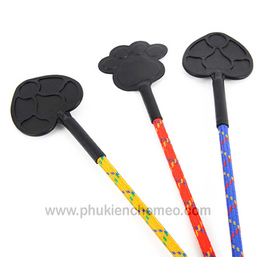 bề mặt và tay cầm được làm bằng cao su mềm nên sẽ không lo vỡ hay gãy.kèm theo đó tay cầm được gắn với đoạn dây giúp bạn có thể treo lên cao tránh các bạn thú cưng phá nha