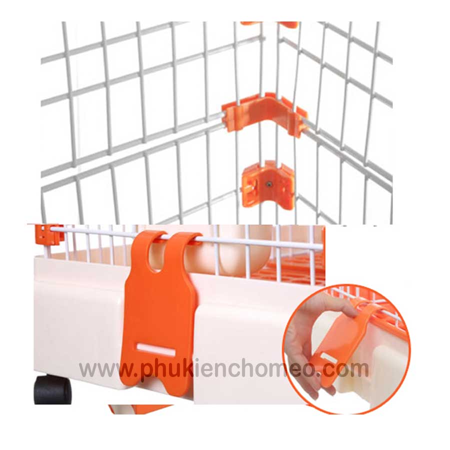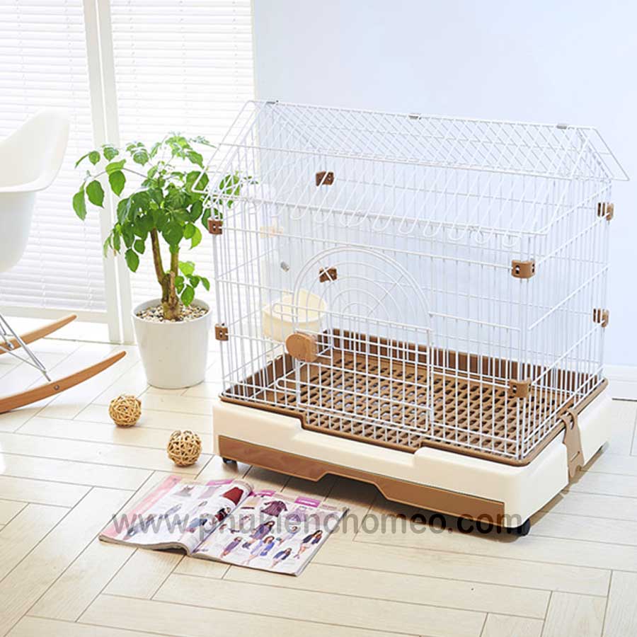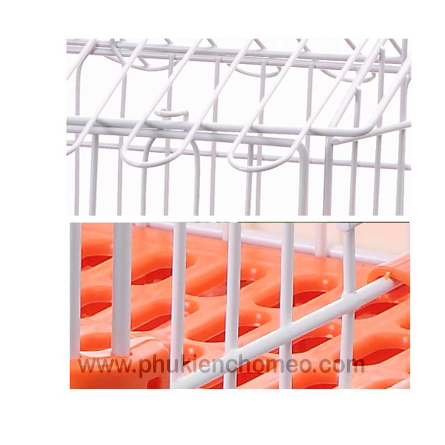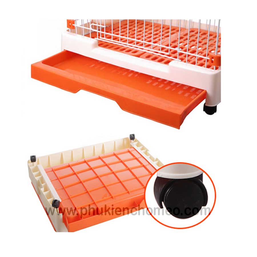 Chuồng sắt cao cấp sàn nhựa có mái cho chó mèo kết hợp bánh bi di động dễ dàng, hoặc có thể chốt vị trí cố định nếu bạn không muốn di chuyển thường xuyên.