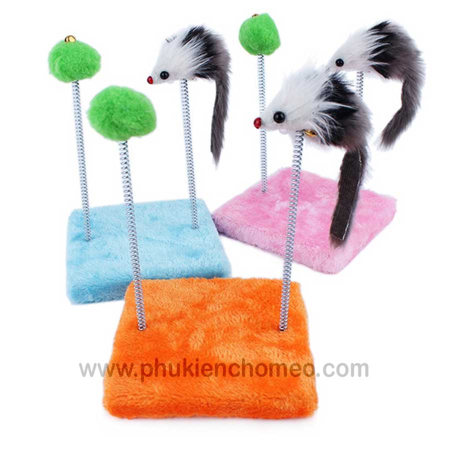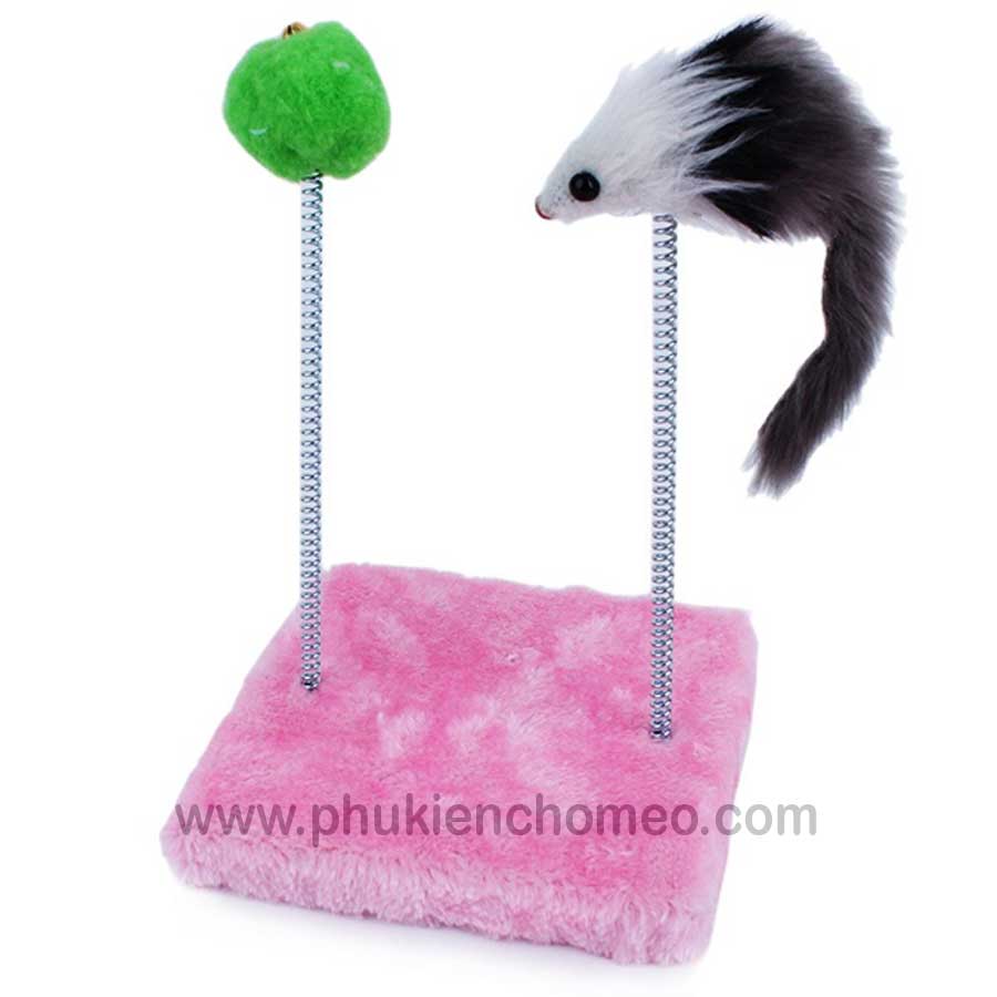 Bàn lò xo mèo tập tát với thiết kế độc đáo gồm thân bàn giữ thăng bằng và lo xo lắc lư qua lại, đầu trang trí bằng chuột bông và bông như thật sẽ khiến Mèo nhà bạn sẽ không thể dời mắt khỏi chúng .