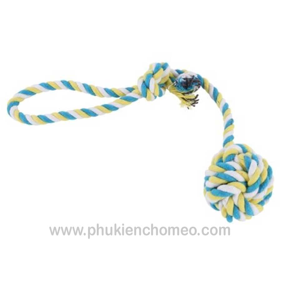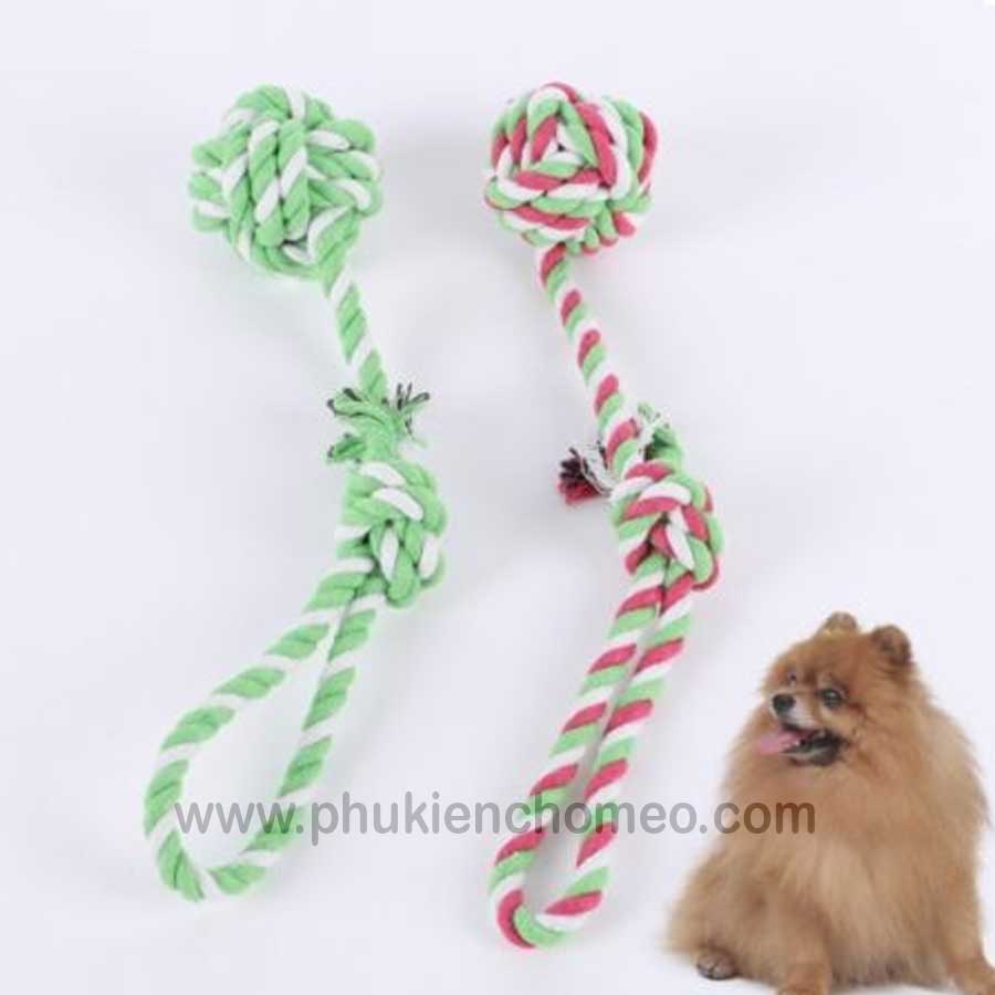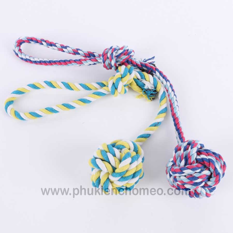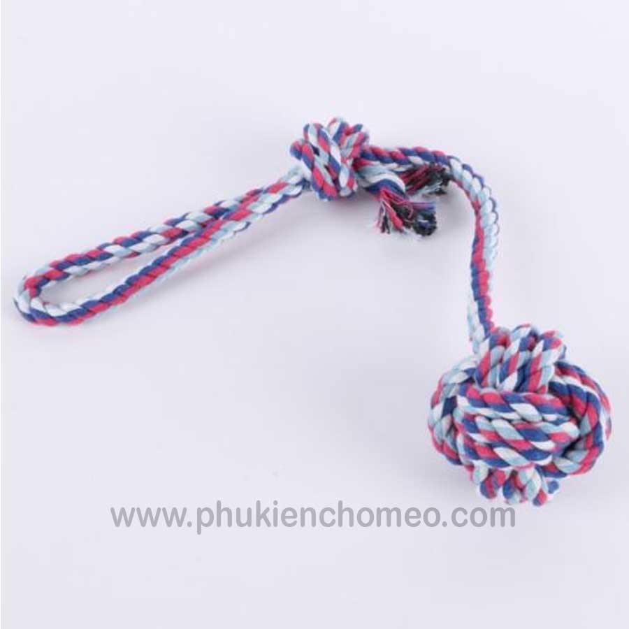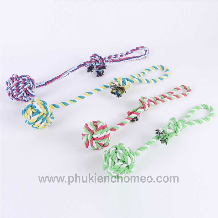 Với chất liệu dù bền chắc được tết thành hình bóng, thứ mà các chú chó rất thích, sẽ tạo hứng thú chơi, kết hợp phần dây thừng dài tiện cho bạn chơi cùng hoặc treo móc.