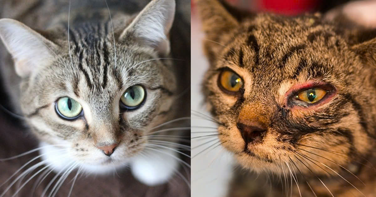 Mèo khoẻ mạnh bình thường và mèo bị các vấn đề về mắt