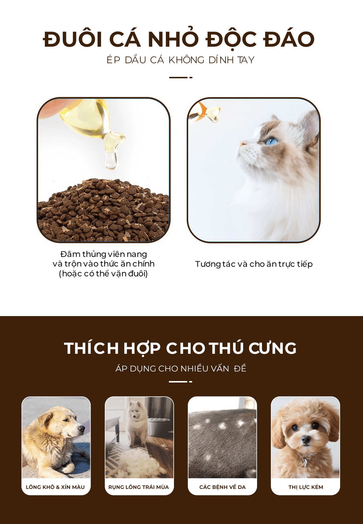✅ Cho uống trực tiếp hoặc trộn vào thức ăn hạt, cơm, pate…