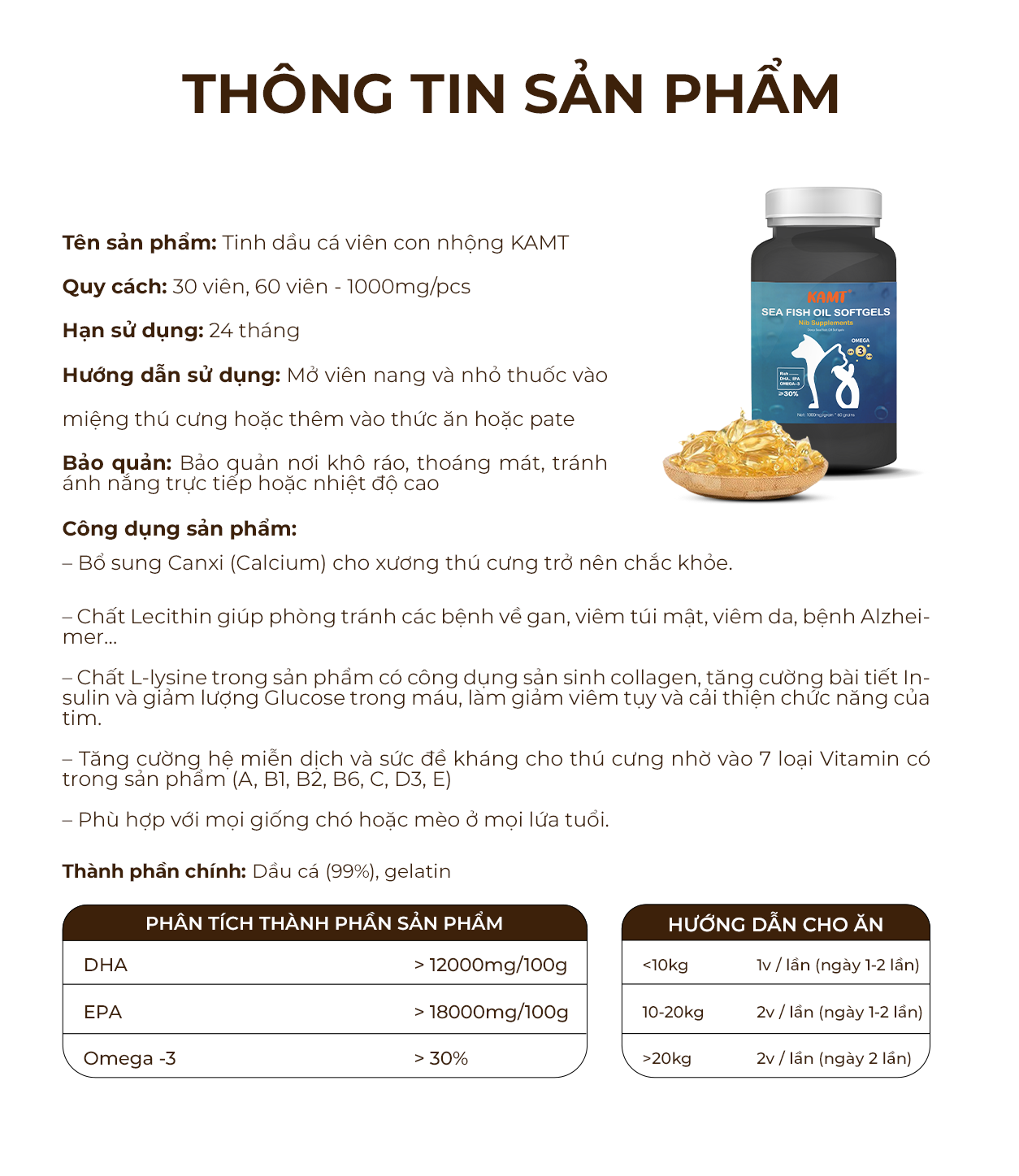 Nếu bạn đang tìm một giải pháp toàn diện cho lông – mắt – tim – xương của thú cưng, thì Dầu cá Kamt viên hình cá 30 viên/hộp là lựa chọn hoàn hảo.